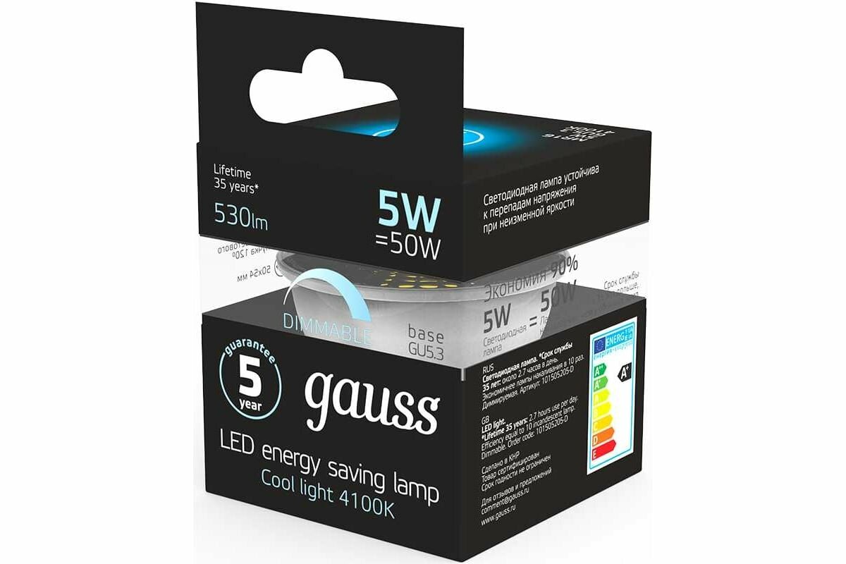 Лампа светодиодная Black MR16 5Вт 4100К бел. GU5.3 530лм 180-265В диммир., GAUSS 101505205-D (1 шт.)