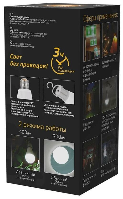Светодиодная лампа Gauss A80 12W 900lm 3000K Е27 авар. с Li-Ion аккумулятором LED 1/5/50