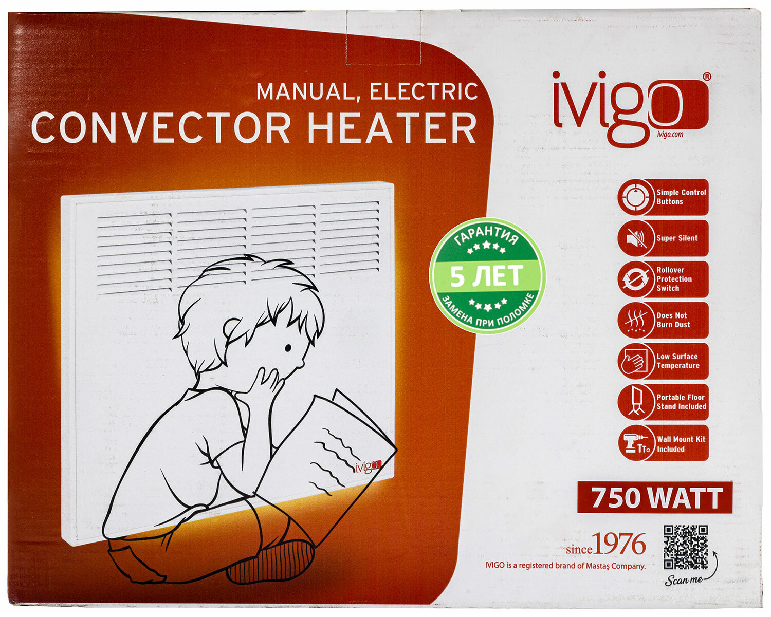 | Дополнительная информация | Механический термостат; Х-образный нагревательный элемент; Не сжигает пыль, не сушит воздух, тихая работа; Многоуровневая система безопасности; Низкая температура корпуса; Безопасные материалы; Интегрированная складная ручка; Длинный 2-метровый кабель; Ножки в комплекте |