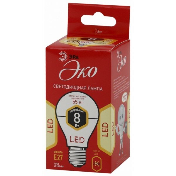 Лампа светодиодная smd A55-8W-827-E27 ECO, ЭРА Б0032095 (1 шт.)