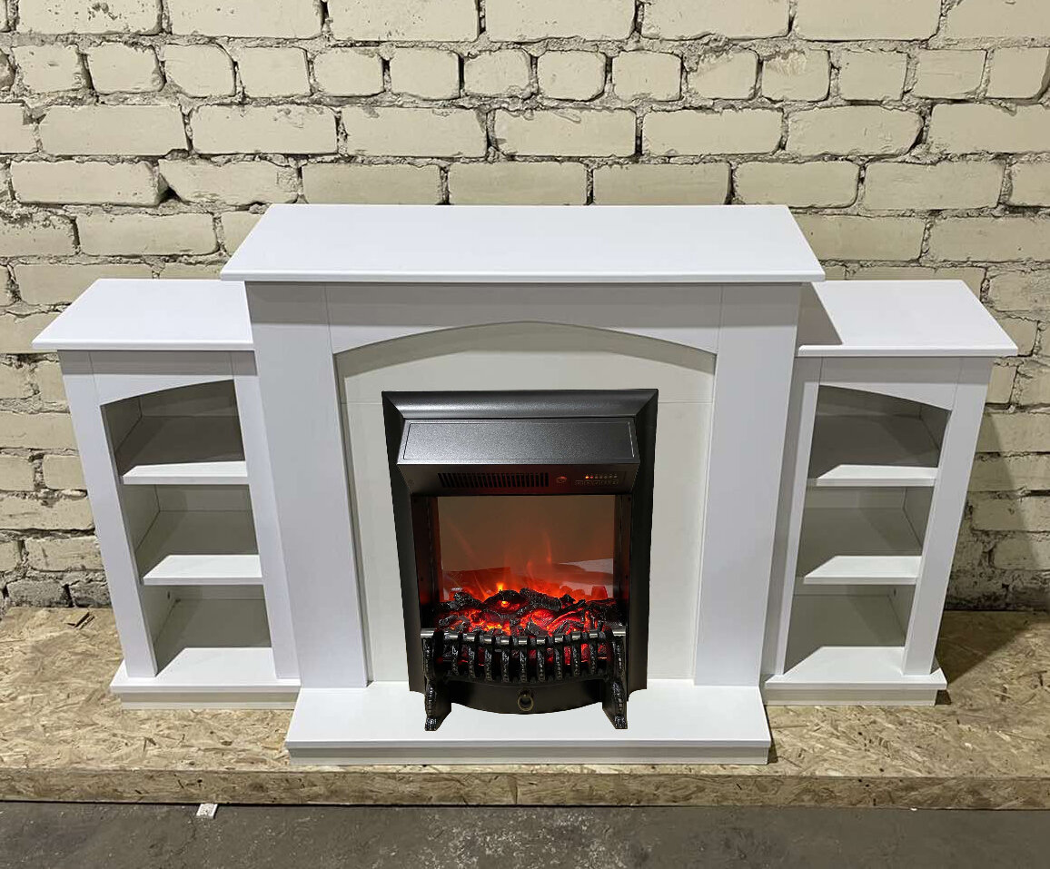 Электрокамин FlameKamin Скандинавия LUX AS-WT с очагом Fobos (камин электрический с тумбами и полками)