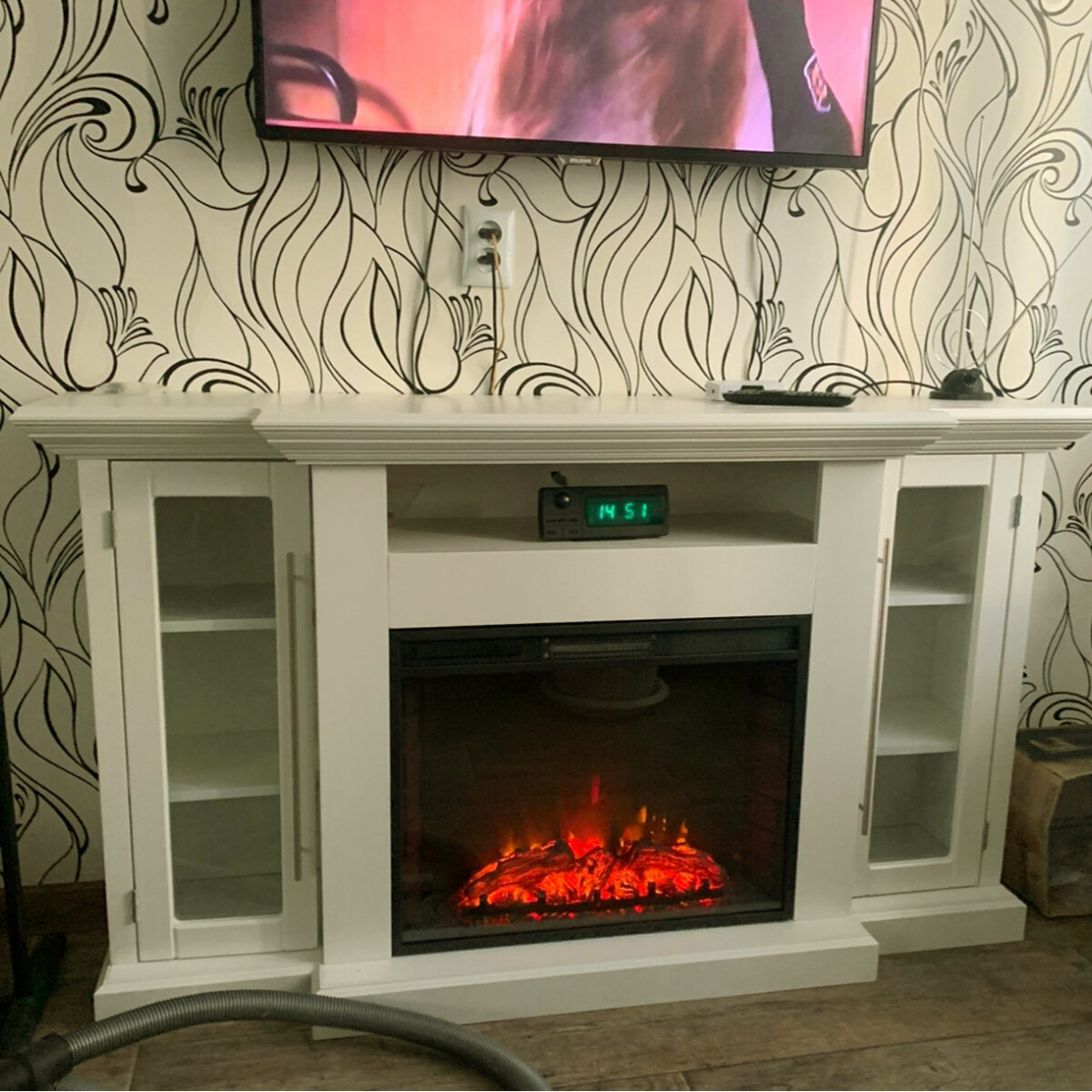 Электрокамин Элтон LUX WT с очагом Sparta 25.5 LED, дверцы с прозрачным стеклом (камин электрический)