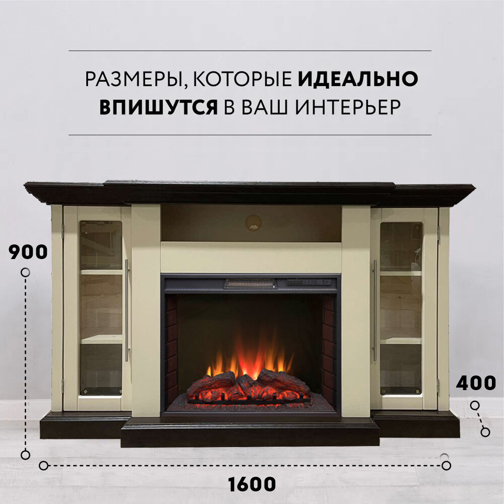 Электрокамин Элтон LUX WT с очагом Sparta 25.5 LED, дверцы с прозрачным стеклом (камин электрический)