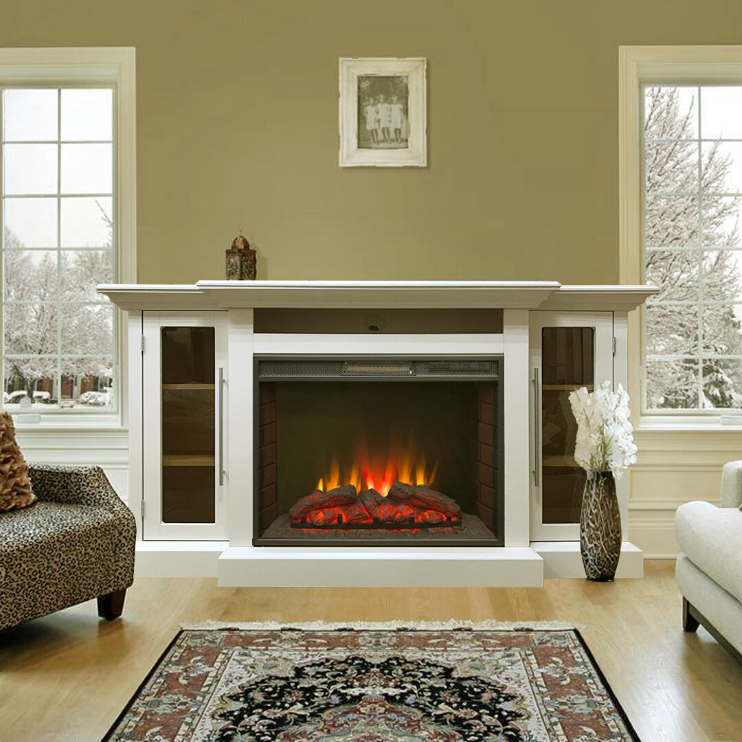 Электрокамин Элтон LUX WT с очагом Sparta 25.5 LED, дверцы с прозрачным стеклом (камин электрический)