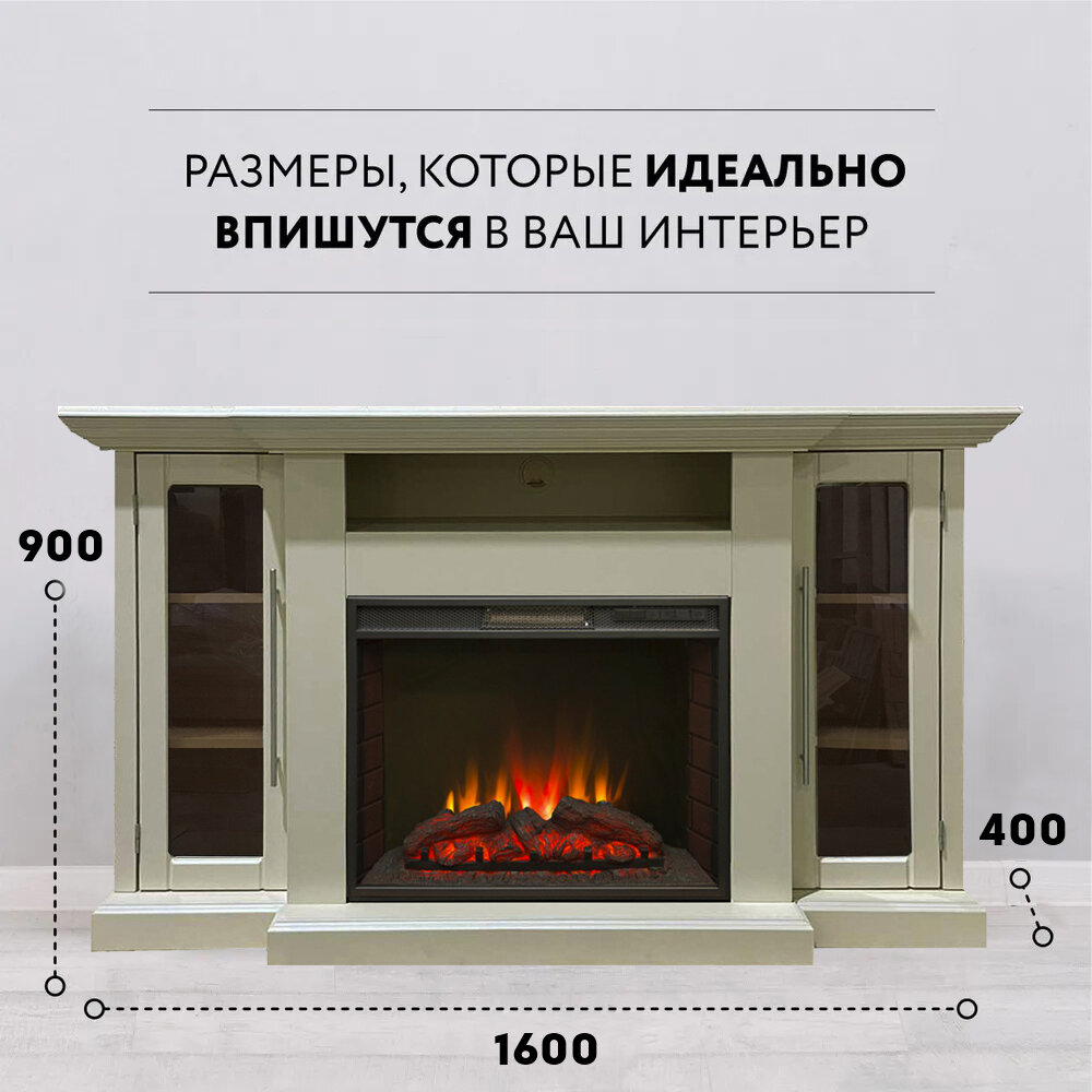 Электрокамин FlameKamin Элтон LUX WT с очагом Sparta 25.5 LED, дверцы с прозрачным стеклом (камин электрический)
