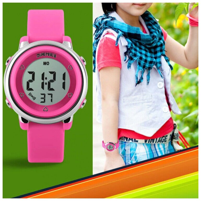 Часы детские Skmei/Скмей 1100, водонепроницаемые, будильник, розовые интересное: