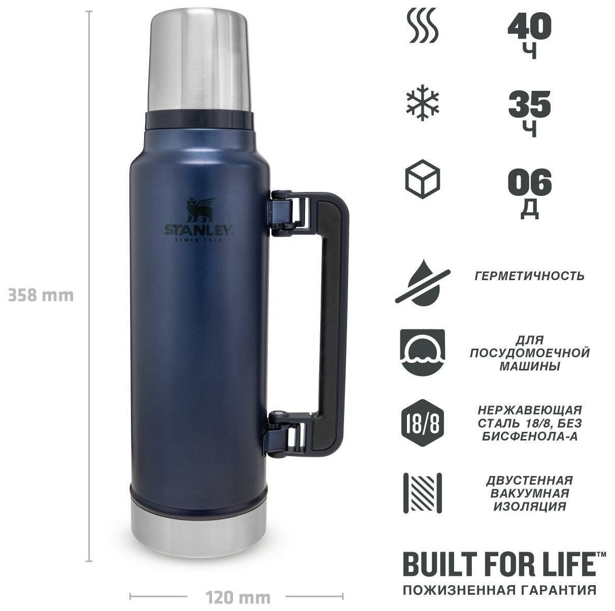 Термос Stanley: Classic 1.4L (Синий) интересное: