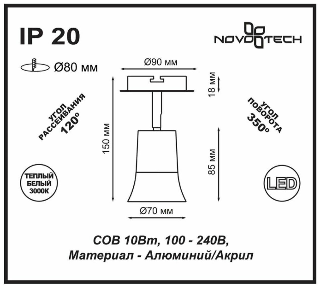 Светильник Novotech 357457, LED, 10 Вт, 3000, теплый белый, цвет арматуры: белый, цвет плафона: белый интересное: