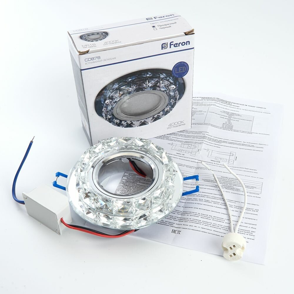 Купить Светильник встраиваемый Feron "CD878" GU5.3 с подсветкой. Черный+прозрачный