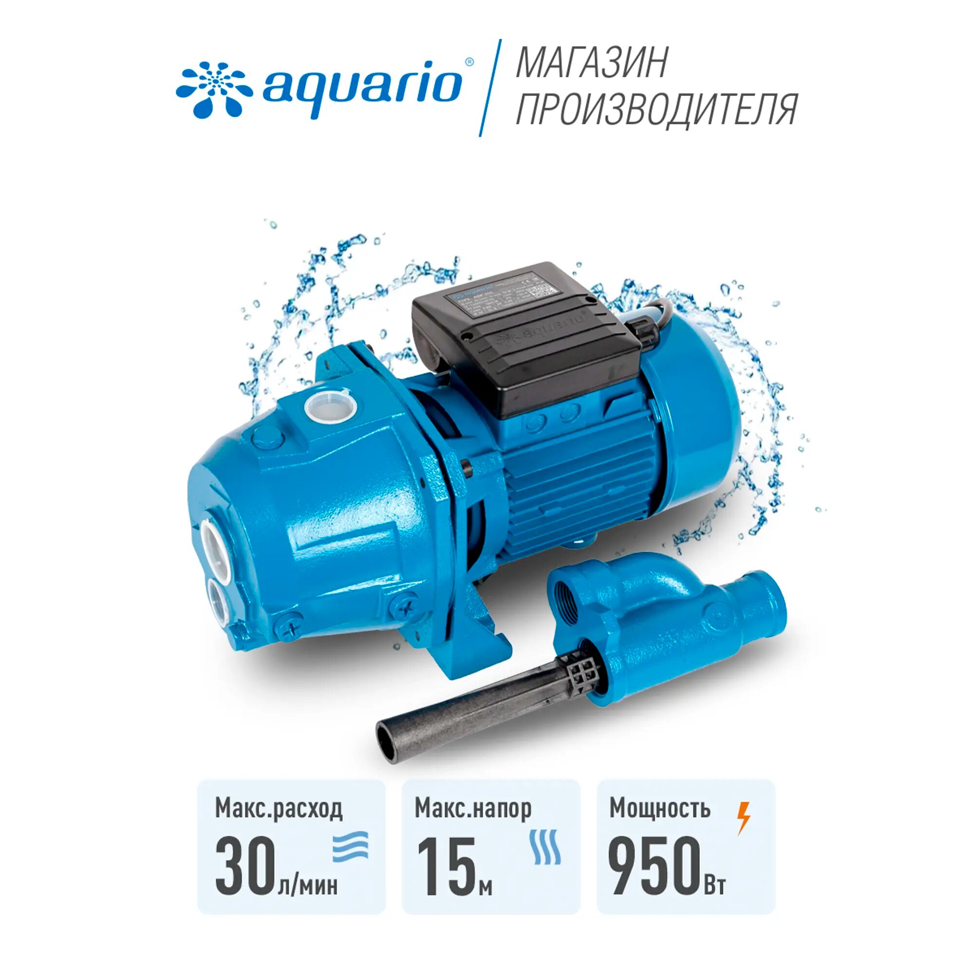 Насос поверхностный Qmax= 2,1м3/ч Hmax=50м Aquario ADP 355