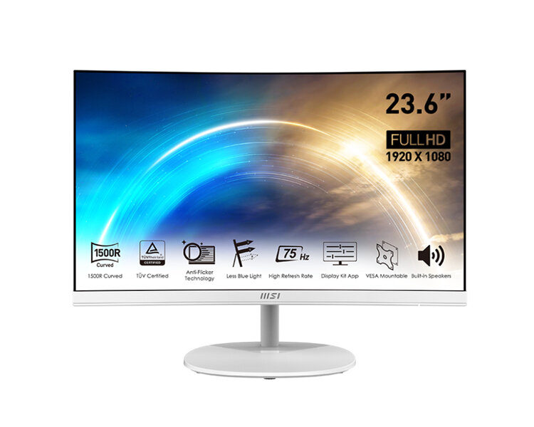 MSI PRO MP241CAW 23.6" 16:9 FHD(1920x1080)VA Curve 1500R,1ms(MPRT),3000:1,100M:1,250nit,178/178,1xHDMI 1.4,1xDP 1.2,Tilt,VESA,75Hz,1y w-ty