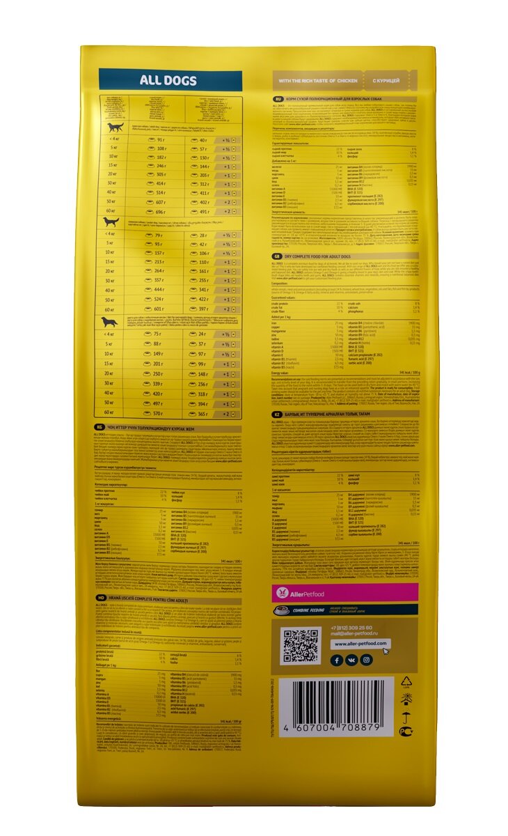 Сухой корм "ALL DOGS" для взрослых собак, курица, 13 кг