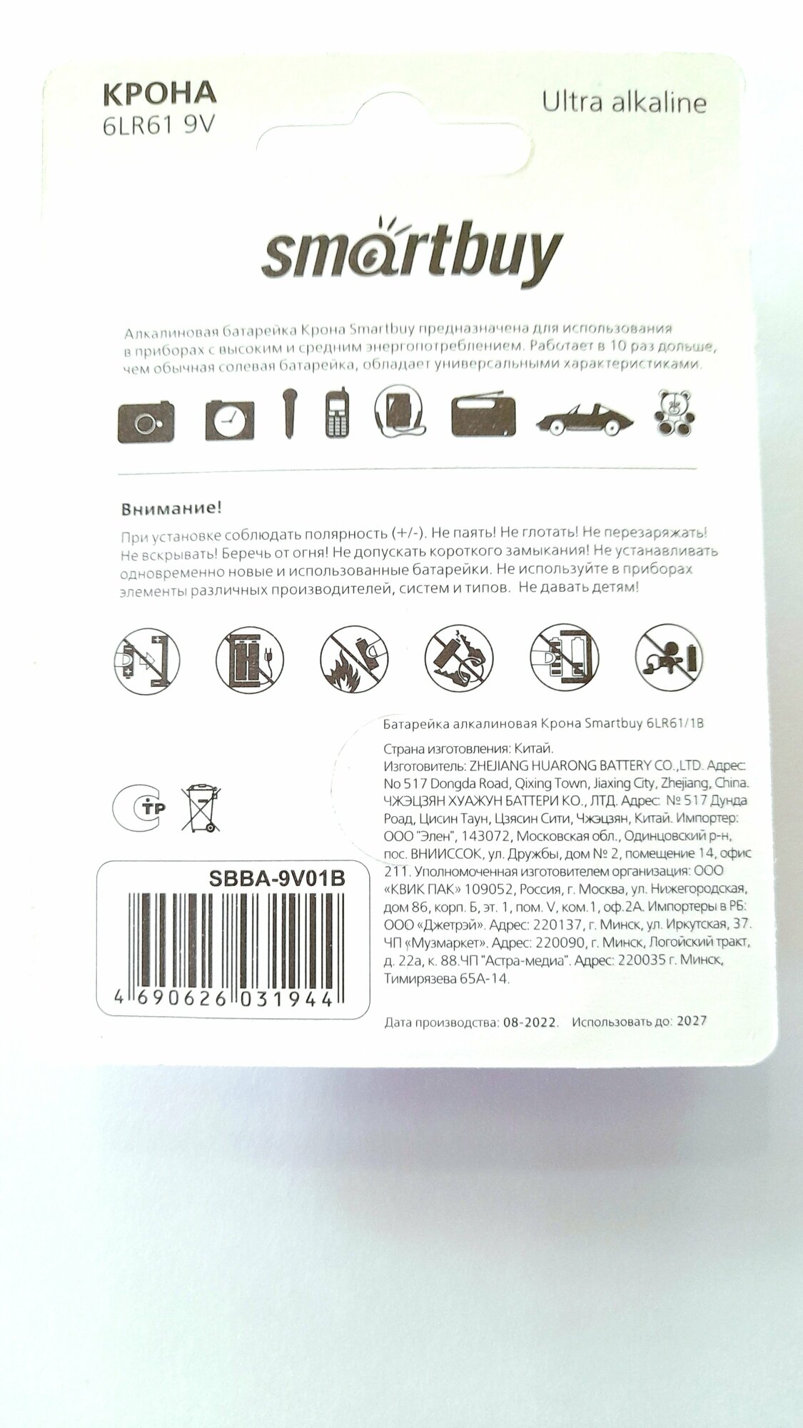 СохранитьБатарейка алкалиновая Крона SmartBuy (SBBA-9V01B) в блистере интересное: