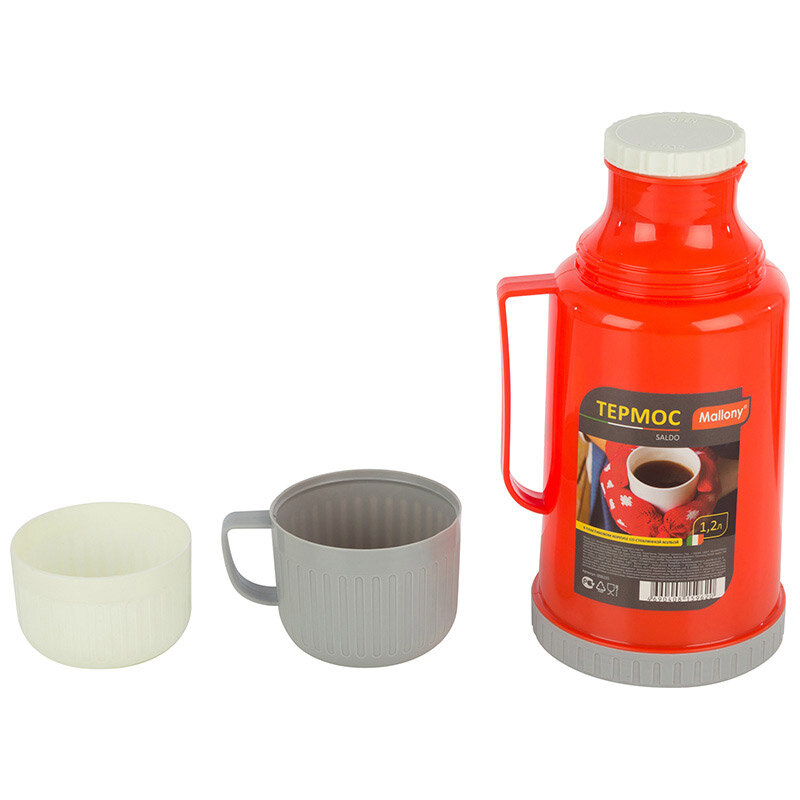 Термос SALDO 1,2л, стеклянная колба, пластик.корпус, 2чашки, 8235 Mallony