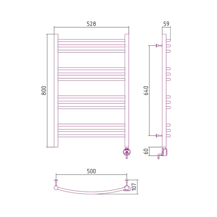 Полотенцесушитель электрический Стилье Формат-10, 800х500, ТЭН справа 00510-8050