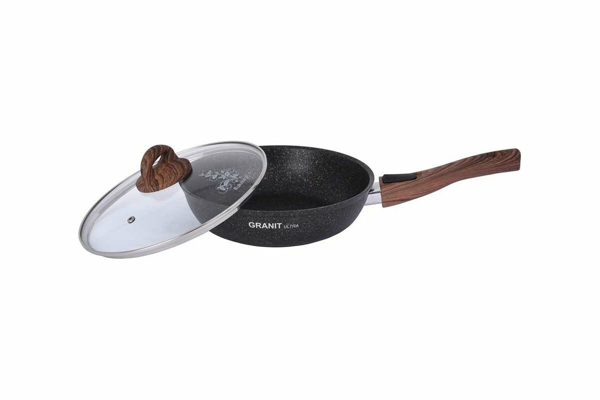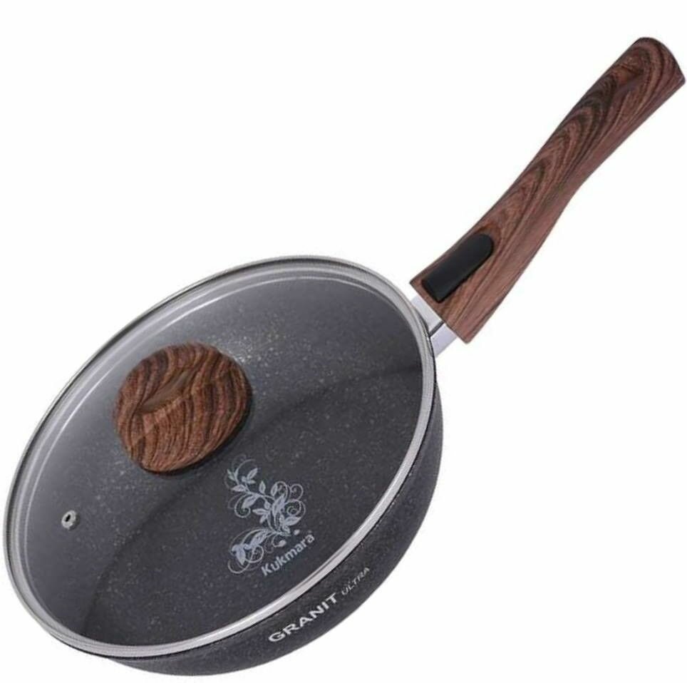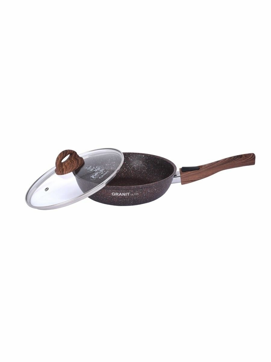 KUKMARA Сковорода Granit ultra, d26 см, стеклянная крышка, съёмная ручка, антипригарное покрытие