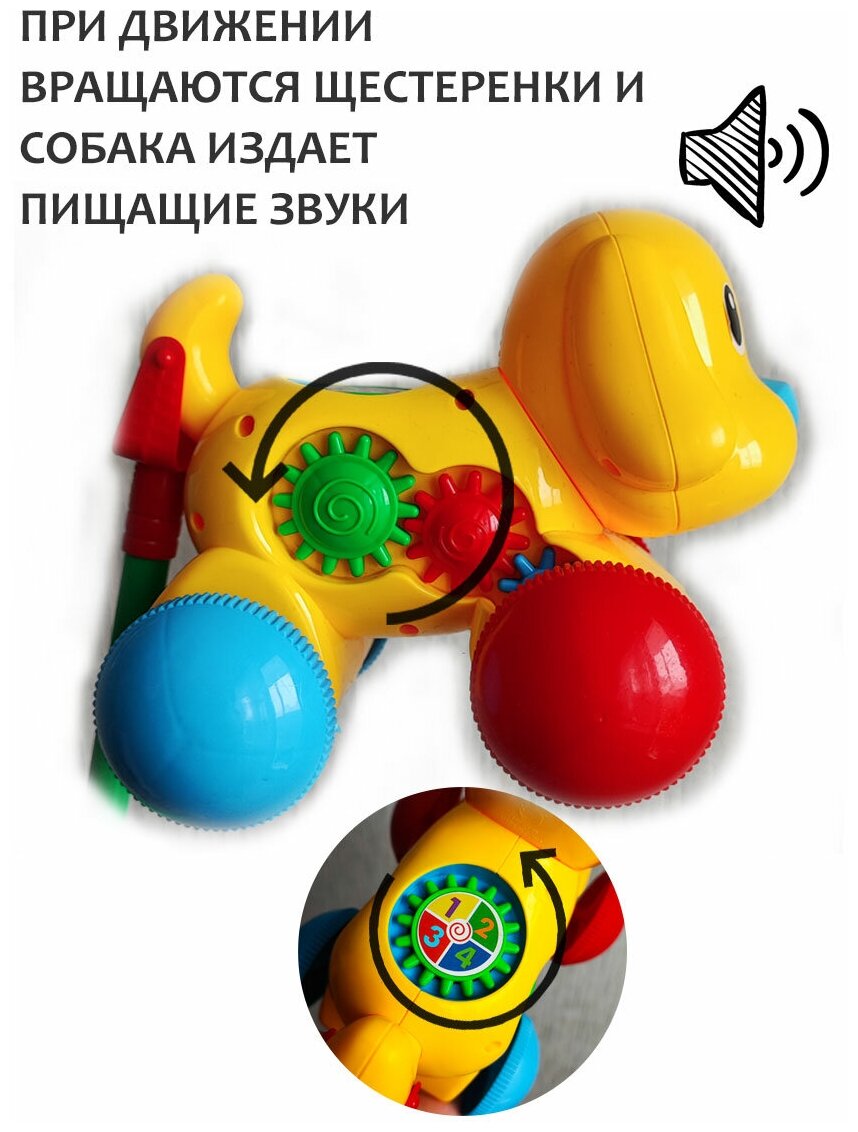 | Отзыв: | Отличная каталка, шестерёнки крутятся, сама собачка пищит, когда едет.