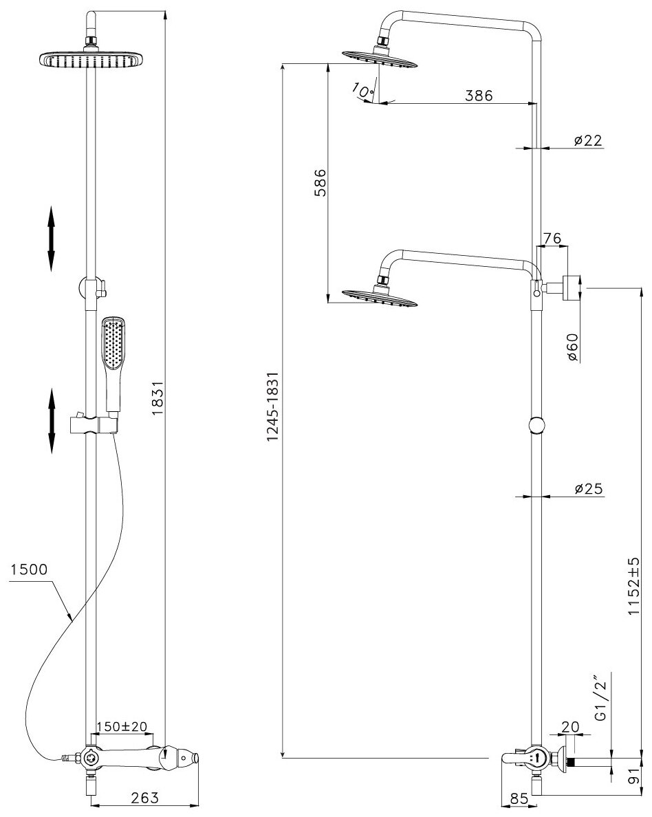 | Дополнительная информация | цвет: черный/золото; высота стойки для душа: 1831 мм; длина верхнего душа: 220 мм; ширина верхнего душа: 250 мм |