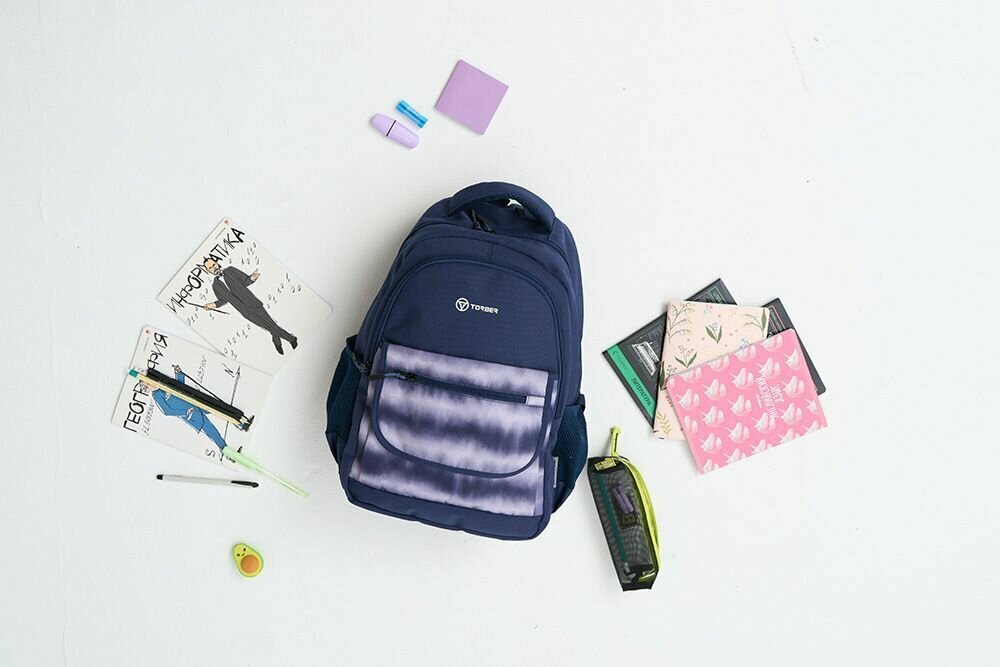 Школьный рюкзак TORBER CLASS X T2743-22-DBLU, темно-синий с орнаментом, полиэстер 900D, 45х30х18 см, 17 л