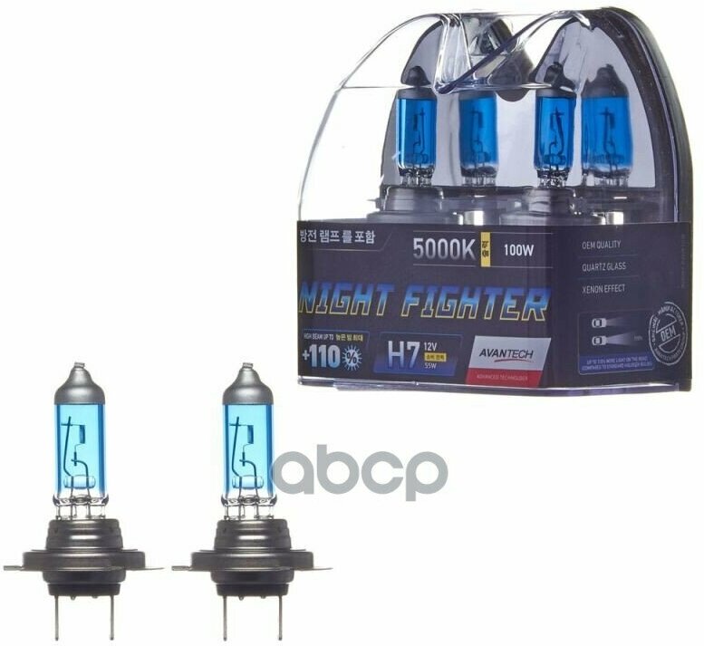 Лампа галогенная Avantech Night Fighter H7 12V 55W 5000K, 2 шт. (блистер)