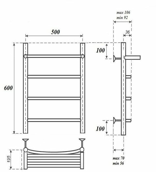 Полотенцесушитель водяной 600x532 Point Афина П3 PN04156P