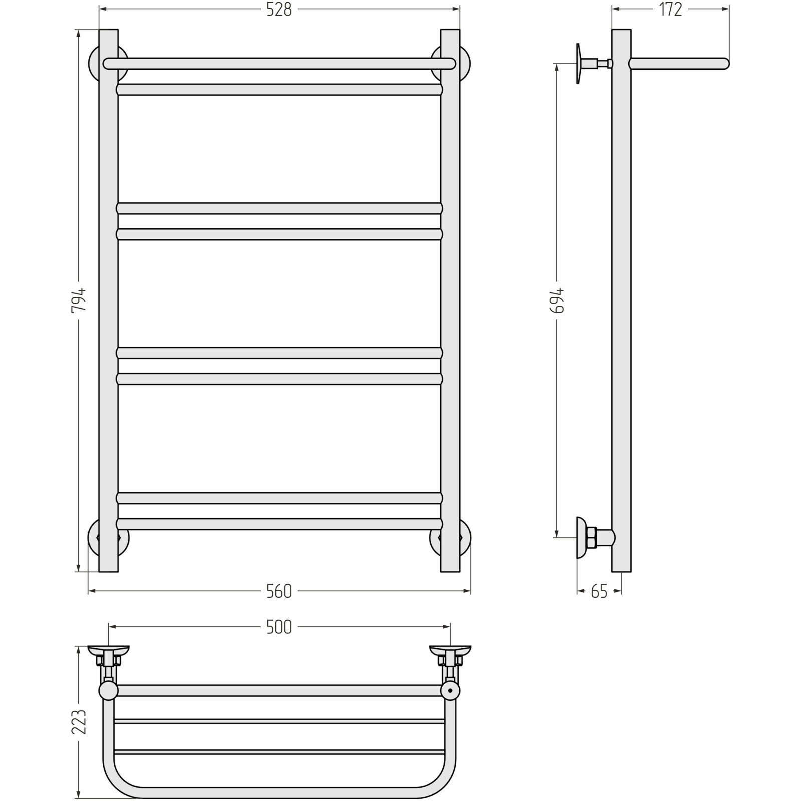 Полотенцесушитель водяной Стилье Версия-Н1 800х500 (Полка+1+2+2+2) П16 арт. 00621-8050