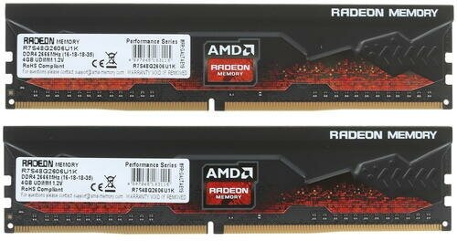 Оперативная память AMD Radeon R7 Performance 8 ГБ (4 ГБ x 2 шт.) DDR4 2666 МГц DIMM CL16 R7S48G2606U1K