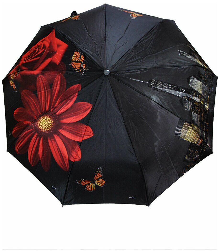 Женский складной зонт Popular Umbrella автомат 1273/Черный
