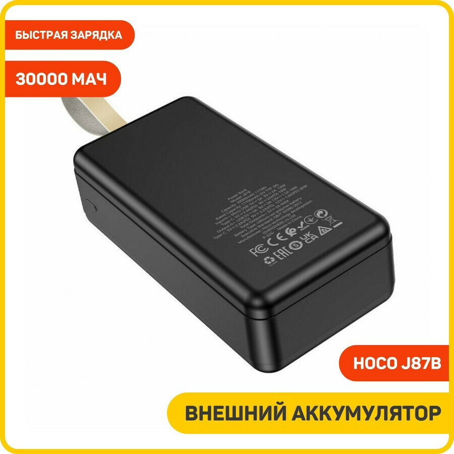 Универсальный Доп. Аккумулятор 30000mAh, J87B, HOCO, выход 1 USB (18W), 1 PD (20W), вход Micro/Type-C, черный