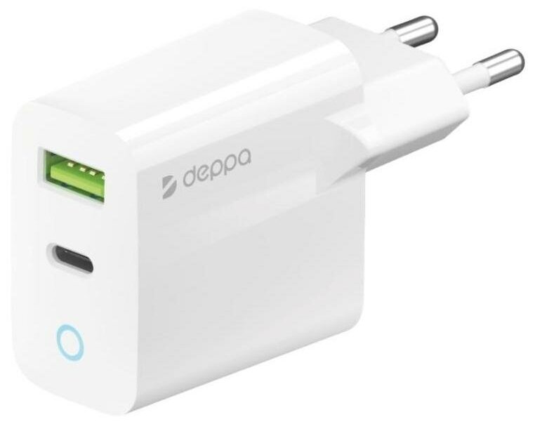 Купить Сетевое зарядное устройство Deppa USB-C + USB A, PD 3.0, QC 3.0, 33W. (11426) белый