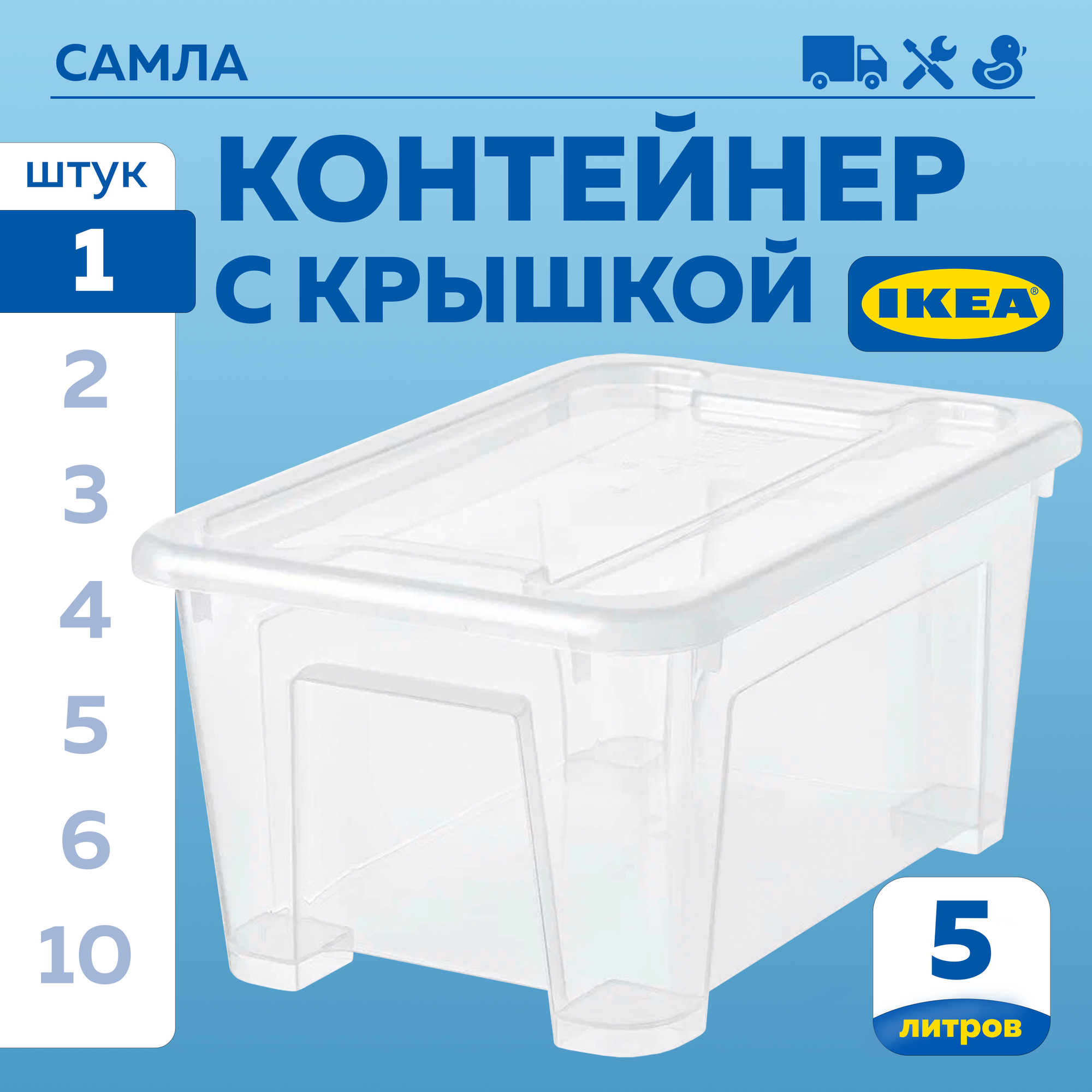 Коробка для вещей с крышкой икеа самла, 28x20x14 см/5 л, 10 шт, прозрачный