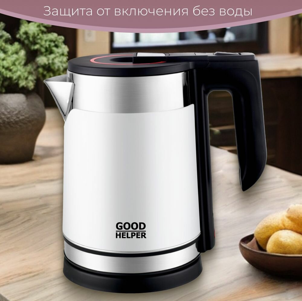 Чайник электрический GOODHELPER KPS-185C, пластик, колба металл, 1.8 л, 1800 Вт, белый
