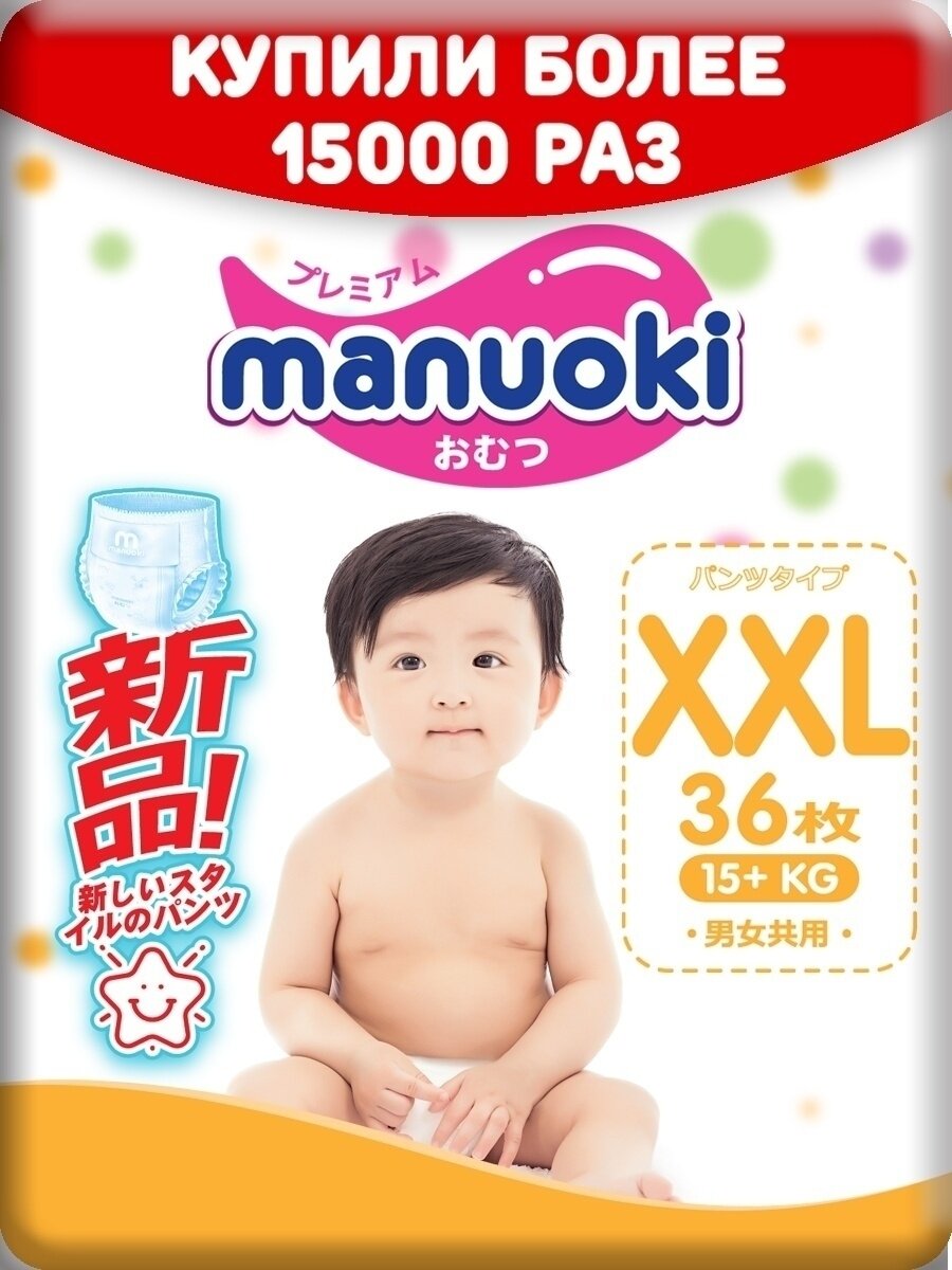 Купить Подгузники-трусики Manuoki XXL 15+ кг, 36 шт