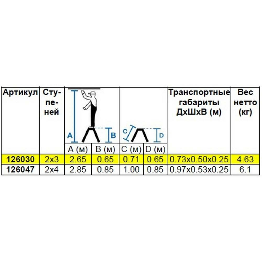 Алюминиевая складная подставка KRAUSE MONTO TREPPO, 6 ступеней (2x3), высота 0,65 м, партномер 126030