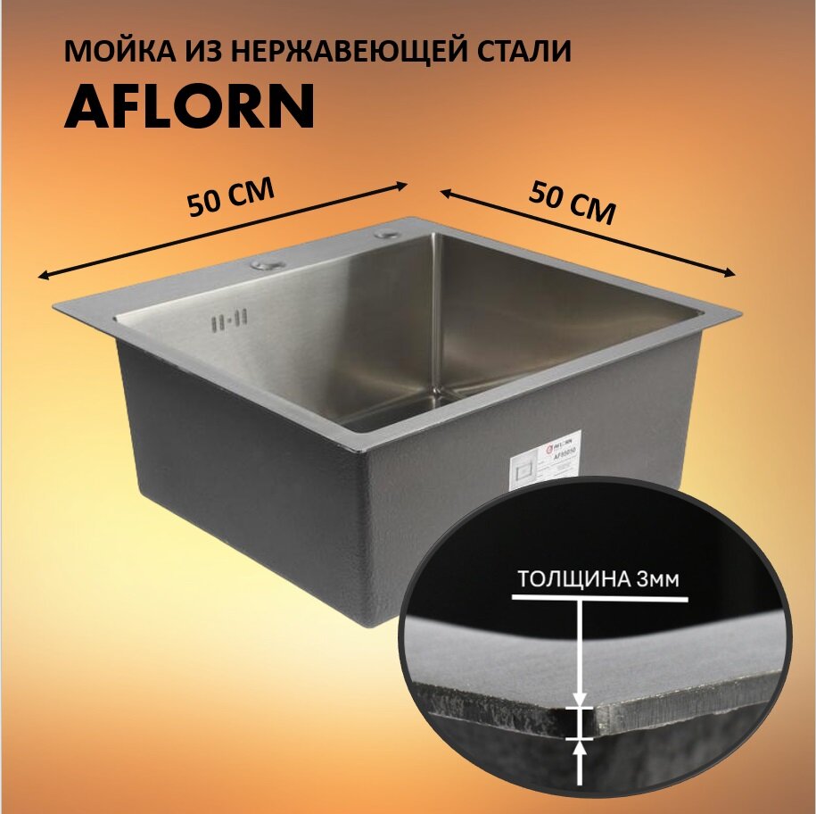 Мойка для кухни врезная из нержавеющей стали 3мм 50х50 премиум AFLORN AF95050 сатин