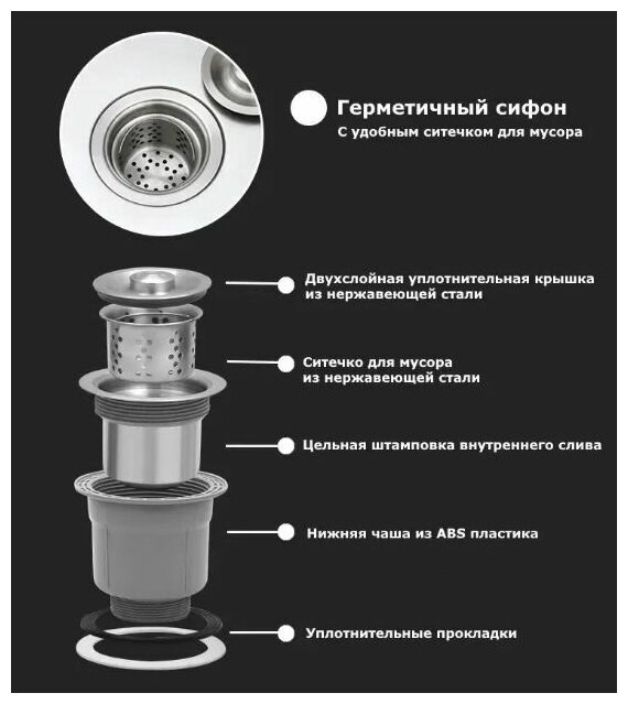 | Дополнительная информация | сифон с углубленной горловиной, мусоросборником и крышкой |