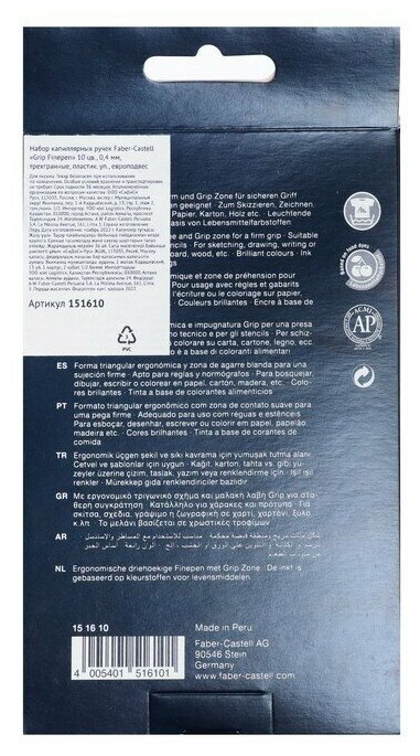"Faber Castell" Набор капиллярных ручек "Grip Finepen" 0.4 мм 10 цв. 10 шт. 151610 цвет чернил: ассорти