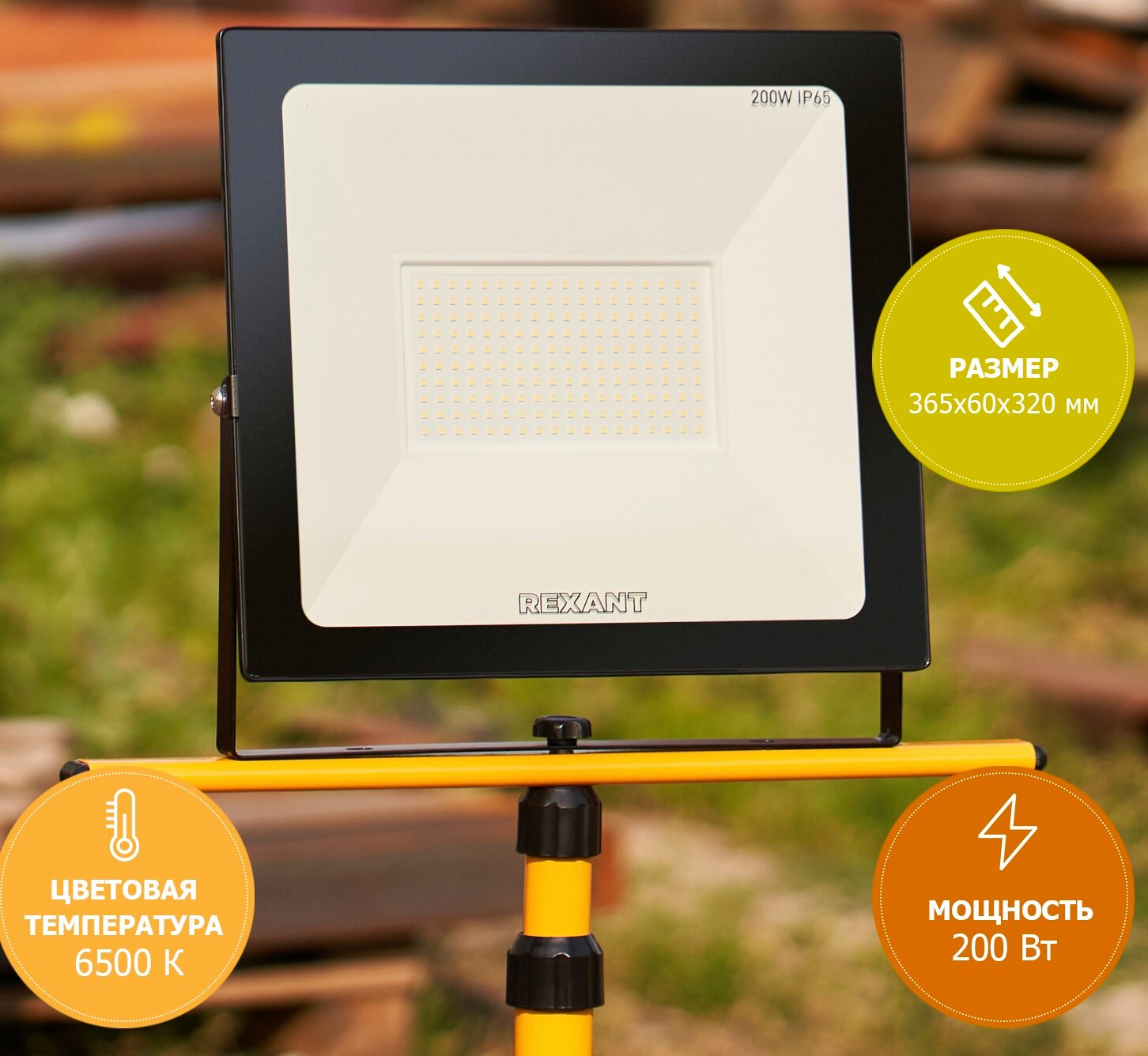 Прожектор светодиодный Rexant, 200 Вт, 6500 К, IP65, черный