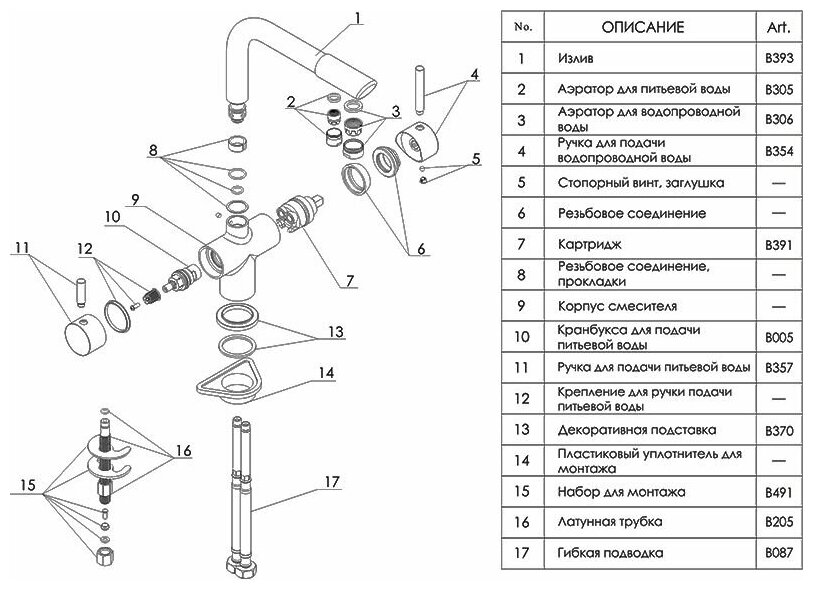 | Особенности | аэратор / встроенный фильтр / поворотный излив |