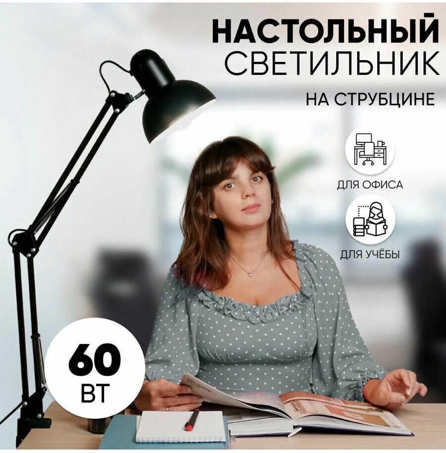СохранитьЛампа офисная Feron DE1430 24233, E27, 60 Вт, цвет арматуры: черный, цвет плафона/абажура: черный интересное: