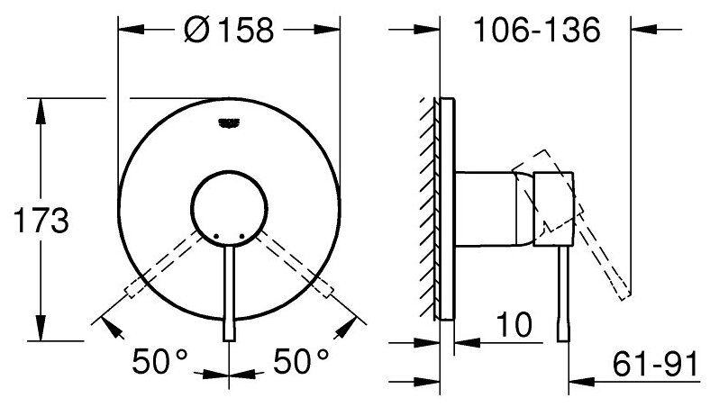 Лицевая часть встраиваемого смесителя Grohe Essence, арт. 24057BE1, 1 функция, никель интересное: