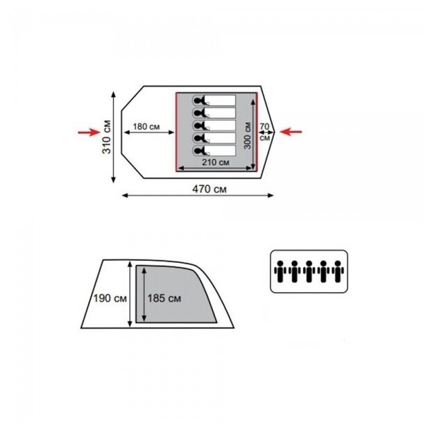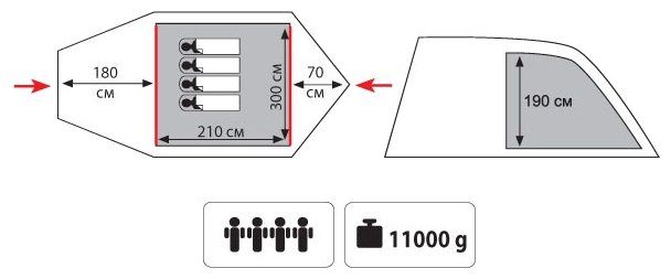 | Габариты внутренней палатки(ДxШxВ) | 210x300x190 cм |