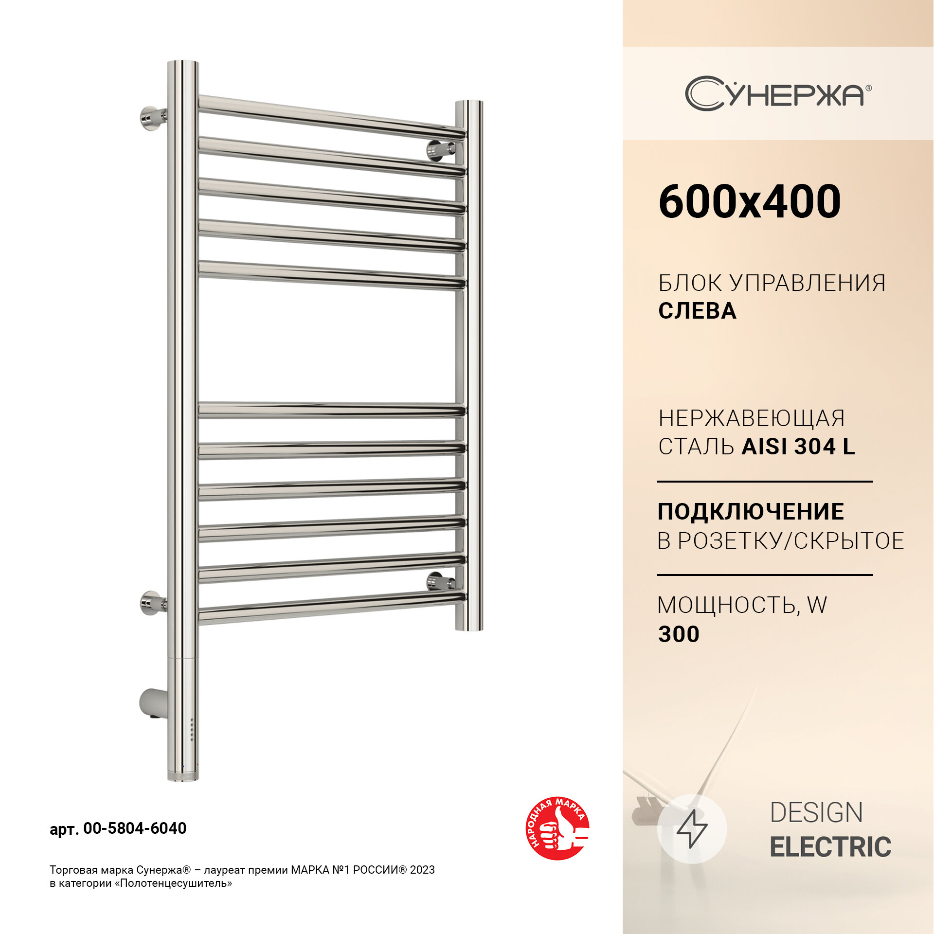 Купить Электрический полотенцесушитель Сунержа Богема 3.0 прямая 600x400 МЭМ Лев. арт. 00-5804-6040