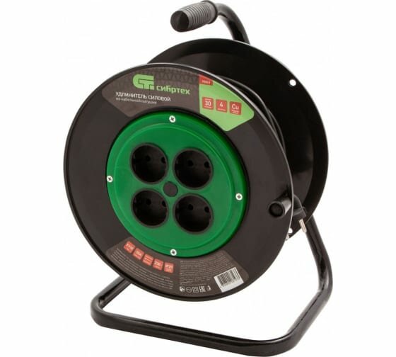 СИБРТЕХ 95843 Удлинитель силовой на кабельной катушке, 4 роз б/з, ПВС, 30 м, 2200 Вт (10А), тип УХ10 Сибртех СИБРТЕХ 95843 1шт