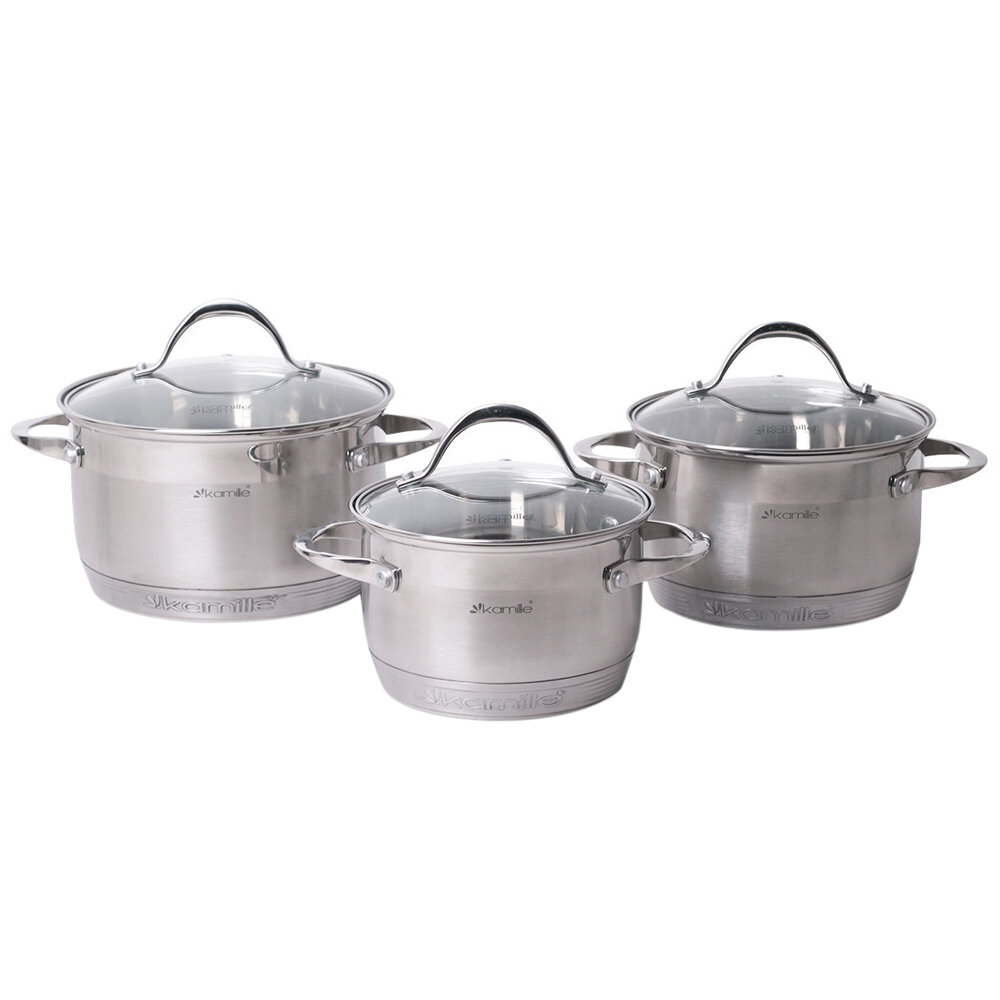 Набор из 3 кастрюль Kamille 1.8 л, 2.3л, 3.3л из нержавеющей стали с крышкой