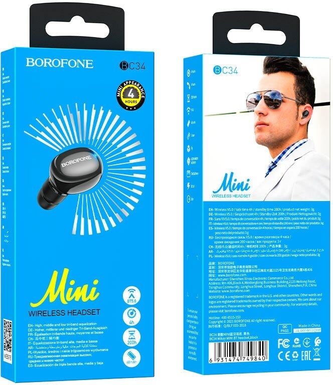 Ниже Вы можете прочитать отзывы на Наушники внутриканальные Borofone BC34, MIKEY, bluetooth 5.0, моно, цвет: черный, ознакомится с подробными характеристиками, посмотреть интересные обзоры и фотографии на Наушники внутриканальные Borofone BC34, MIKEY, bluetooth 5.0, моно, цвет: черный.