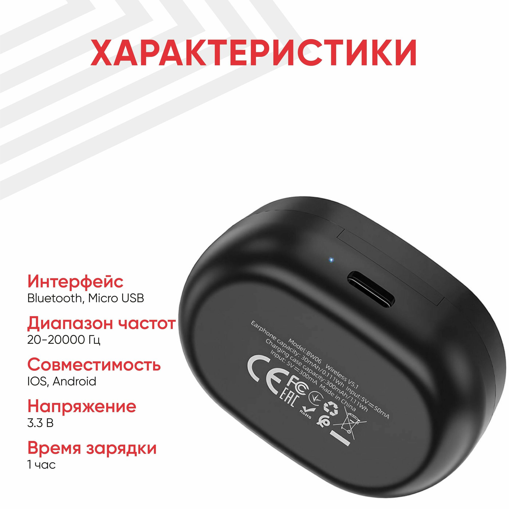 | Емкость аккумулятора кейса | 300 мА·ч |