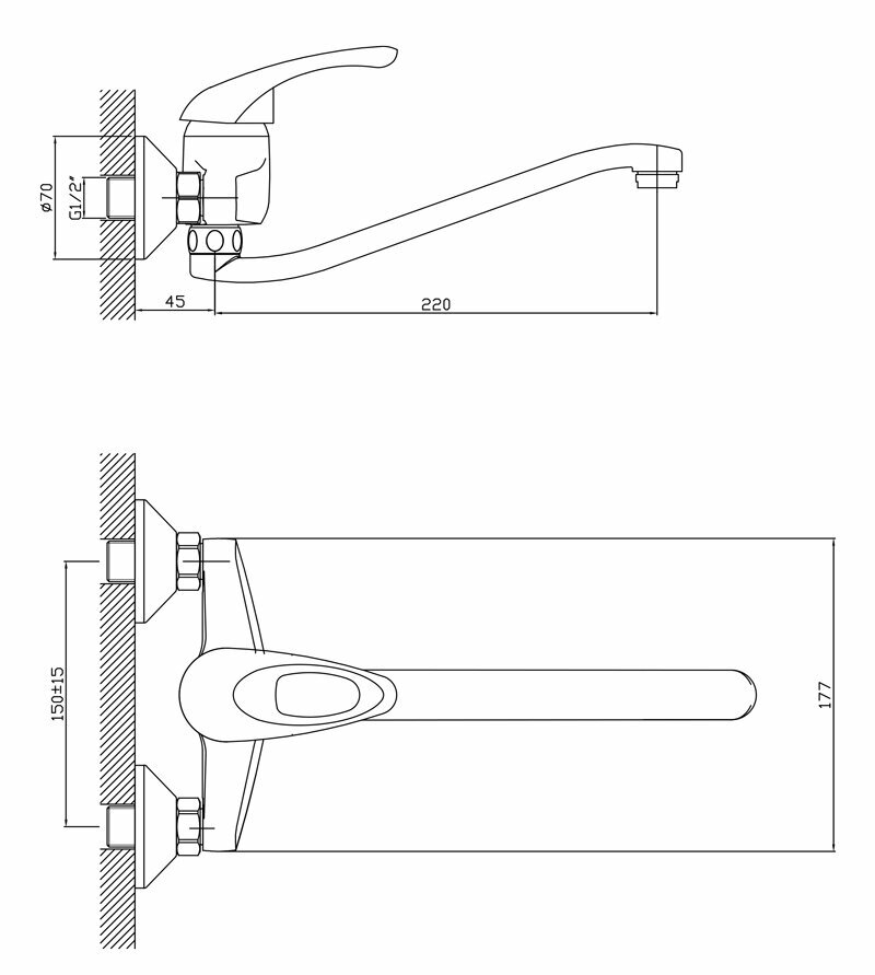 Смеситель для кухни настенный VIKO V-6906, цвет хром
