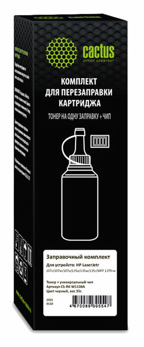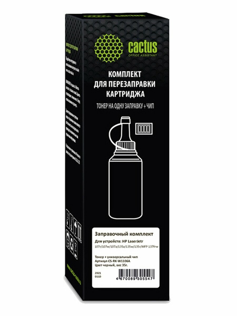 Купить Тонер Cactus CS-RK-W1106A черный флакон 35гр. (в компл.:чип) для принтера HP LaserJet 107/135/MFP 137