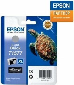 Картридж для струйного принтера EPSON T1577 Light Black C13T15774010, 850 стр, 25,9 мл. серый